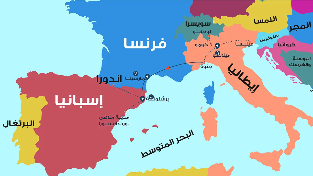 رحلة أوروبية استثنائية تأخذك عبر إيطاليا وسويسرا وفرنسا وإسبانيا وأندورا حيث يلتقي التاريخ العريق بالفخامة الأوروبية والطبيعة الساحرة في تجربة ثقافية متكاملة عالمية.