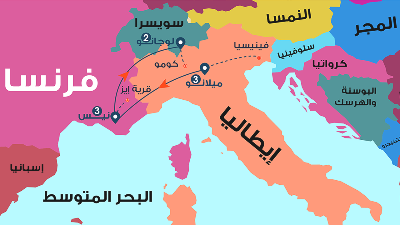 استمتع برحلة أوروبية راقية تجمع بين سحر ميلانو، أجواء فينيسيا الرومانسية، جمال جنيف الطبيعي، وتنتهي بهدوء وأناقة مدينة أنسي الساحرة.